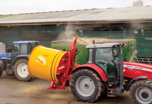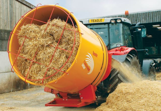 Tromlemaskine anno 2018 med lang tromle for håndtering af bigballer eller to rundballer.